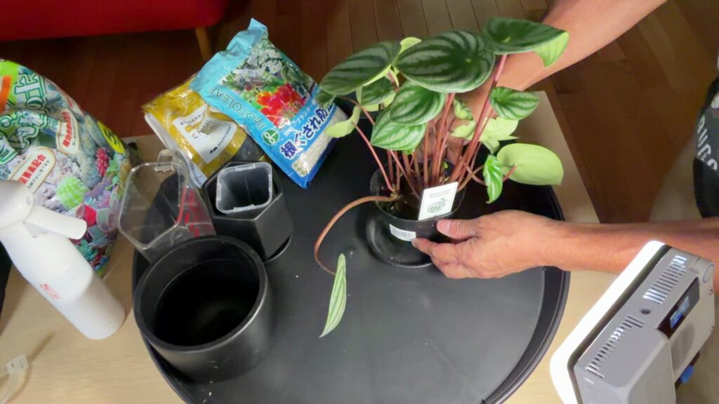 今回は、ペペロミア・アルギレイア、通称「スイカペペ」の植え替えを行いました。