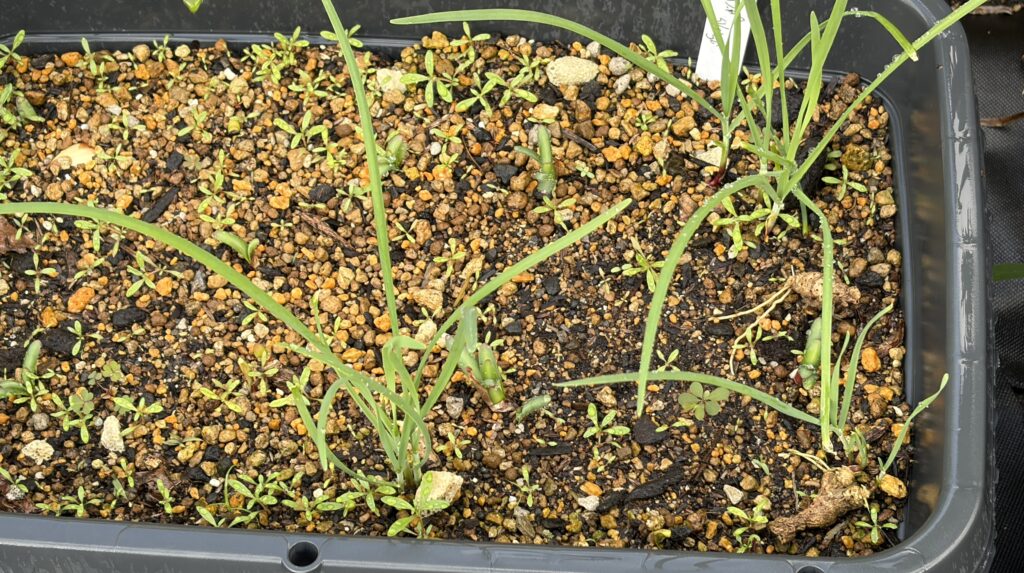 筆者のプランターで芽吹いた彼岸花。まだ花はこれから